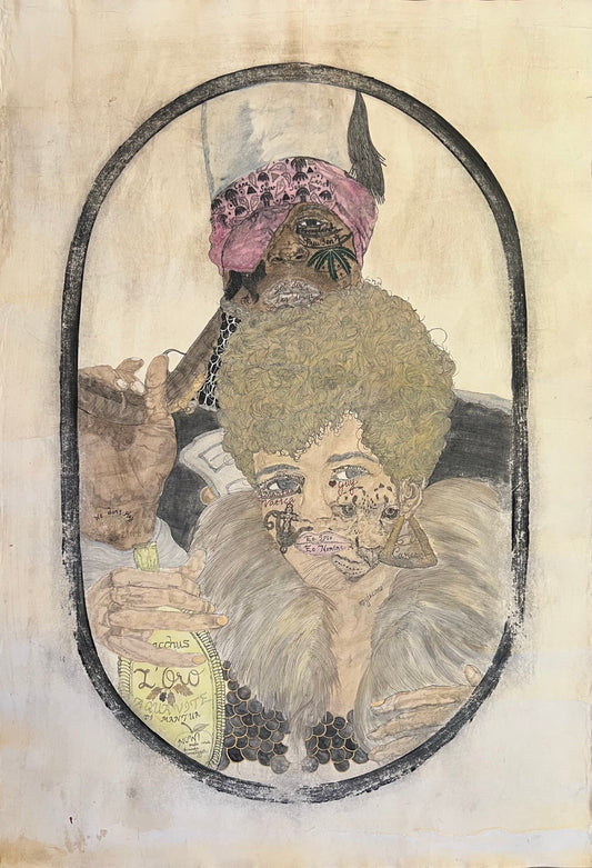 Umar Rashid / Frohawk Two Feathers (JAV) | Comely Gigi with the Tattooed Eyelids, 2010 | Ink, watercolor, coffee and tea on paper, 110x75,5