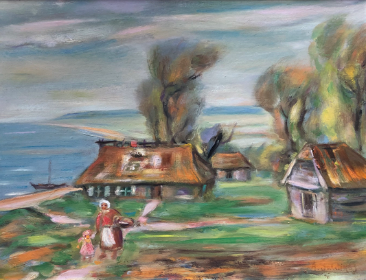 Adomas Galdikas | Bobutė prie jūros | Aliejus, kartonas, 45x58