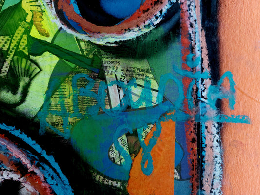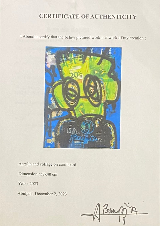 Aboudia | Be pav., 2023 | Akrilas, koliažas, kartonas, 58x41 (65,5x48,5)