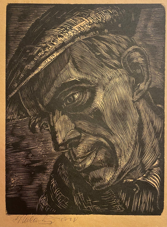 Adolfas Vaičaitis | Vyras su kepure, 1938 | Medžio raižinys, 19,5x15,5 (32x27)
