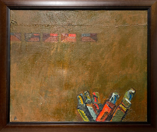 Vincas Kisarauskas | Figūros pakraštyje, 1987 | Aliejus, drobė, 81x100 (96x115)