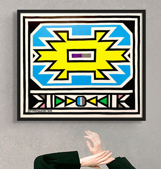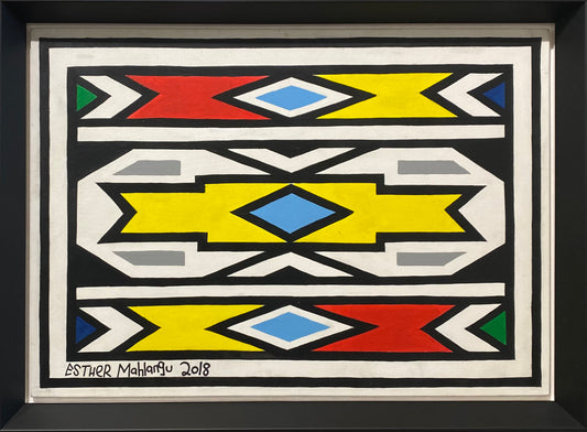 Esther Mahlangu yra daugybę apdovanojimų pelniusi vizualiųjų menų kūrėja ir mylima Pietų Afrikos kultūros ambasadorė. Ji gimė 1935 m. ir tapė nuo 10 metų.