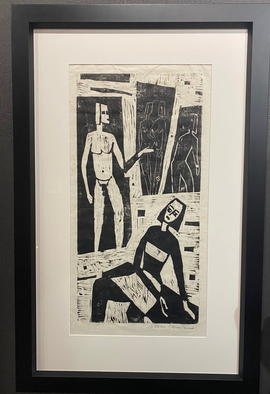 Viktoras Petravičius | Buitinė scena, 1956 | Popierius linoraižinys, 61x30 (91x58)
