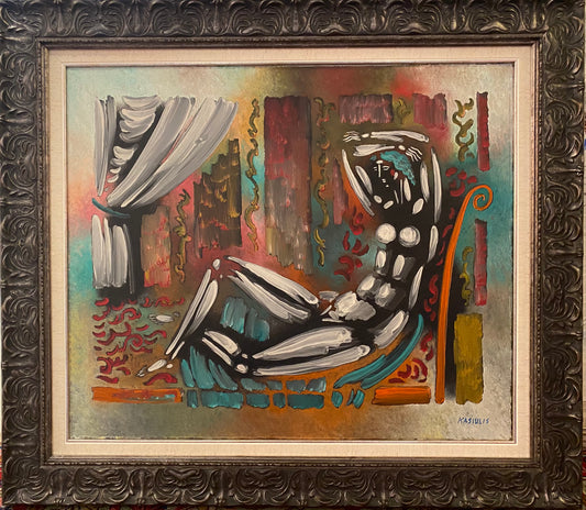 Vytautas Kasiulis | Moters aktas, XX a. 3 ketv. | Aliejus, drobė, 54,5x65 (70x81)
