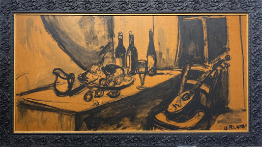 Arbit Blatas | Natiurmortas su mandolina | Guašas, kartonas, 69x135 (84x150)