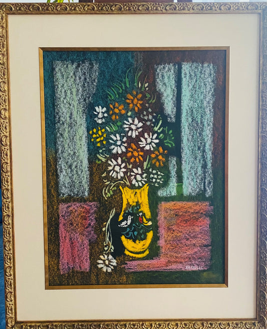 Vytautas Kasiulis | Vaza su gėlėmis | Pastelė, popierius, 65x50 (80x65)