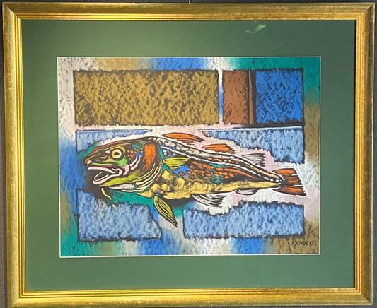 Vytautas Kasiulis | Natiurmortas su žuvimi, XX a. 7 deš. | Pastelė, popierius, 50x65 (76x91)