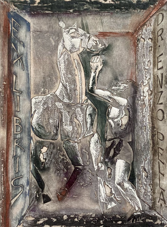 Antanas Kmieliauskas | Ekslibris Dr. Enzo Pellai, 1984 | Pop., autorinė technika (spalv. tekstolito estampas), 16x12 (24x18)