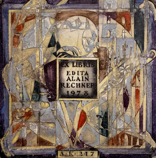 Antanas Kmieliauskas | Ekslibris Edita Alain Rechner, 1978 | Pop., autorinė technika (spalv. tekstolito estampas), 9,7x9,7 (21,5x21,5)