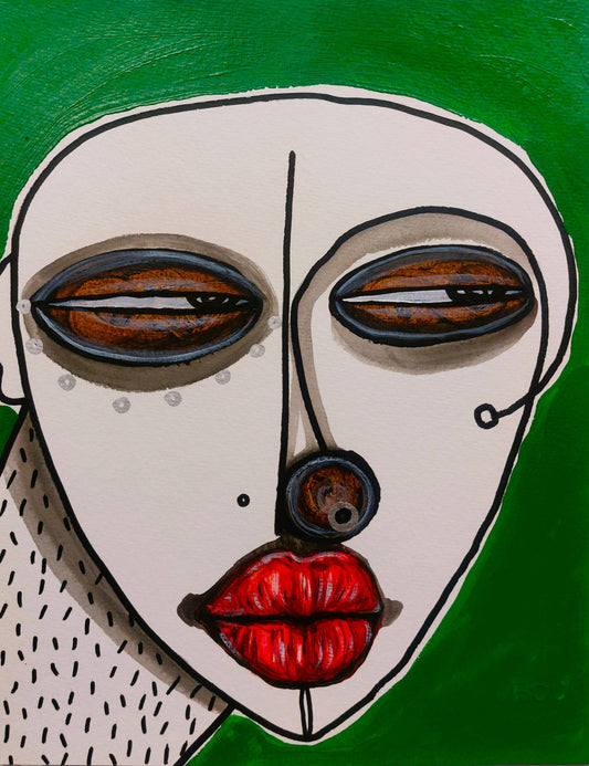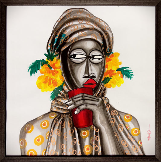 OBOU GBAIS (Dramblio Kaulo Krantas) | Lady, 2021 | Akrilas, popierius, 50x50 (53x53)