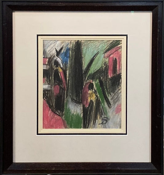 Pranas Domšaitis | Dvi moterys ir namukas | Pastelė, popierius, 26x23 (50x46)