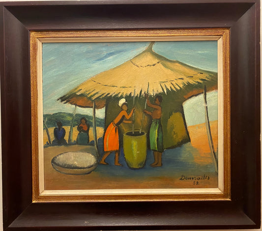 Pranas Domšaitis | Basuto huts | Aliejus, kartonas, 35x32 (50x47)