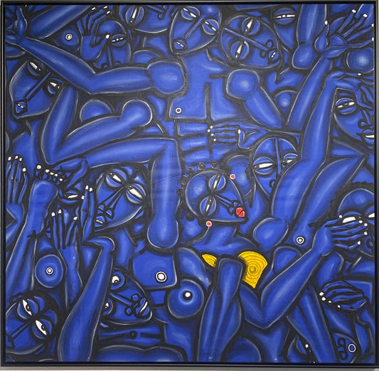 Obou Gbais (Dramblio Kaulo Krantas) | Boogie Woogie Dance Bleu, 2021 | Akrilas ant brezento, 141x145 (145x149)