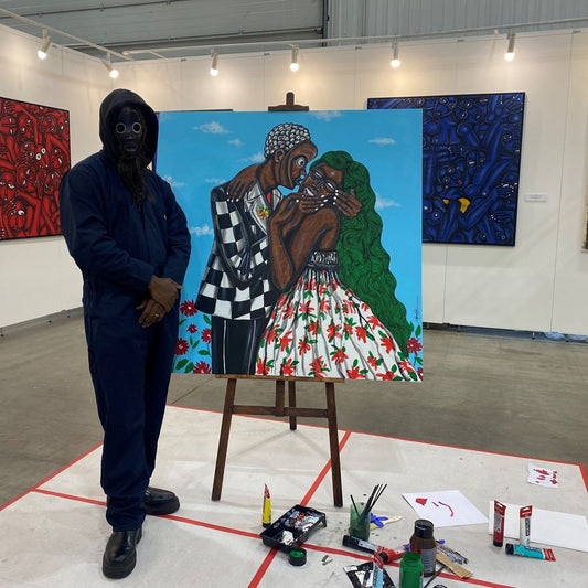 William Bakaïmo (g. 1988, Kamerūnas) | Reconciliation, 2023 | Drobė, mišri technika, 100x100