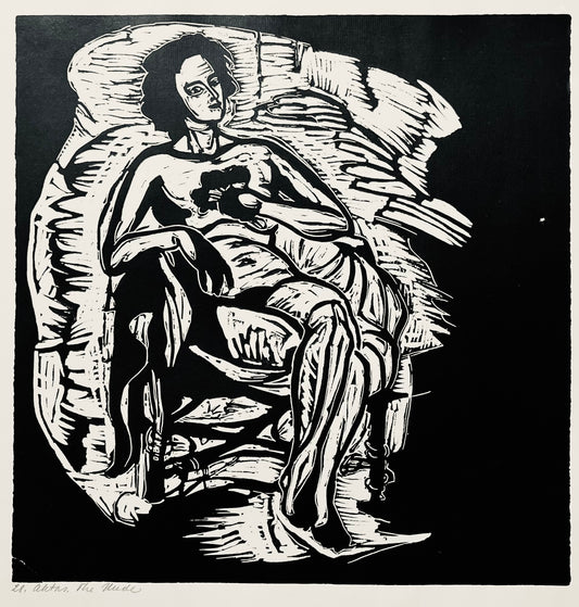 Viktoras Petravičius | Aktas, 1949 | Popierius linoraižinys, 30x30 (53x51)