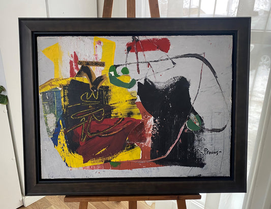 Pranas Gailius | Abstraction | Oil, collage, paper, wood, 54x72 (68x86)