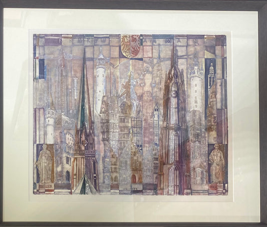 Antanas Kmieliauskas | Frankfurt, 1995 | Paper, author's technique (coloured textile lithograph), 45x54 (61,5x74)