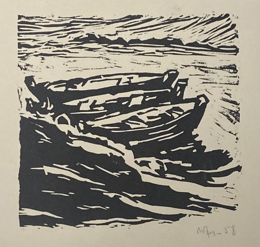 Valerijonas Jucys | Boats, 1958 | Linocut, 11,7x12 (30x30)