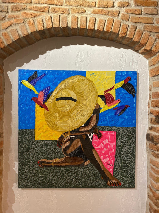 Daniel Gyekyi Gyan (Ghana) | The Hat, 2025 | Acrylic and modeling paste on canvas, 127×127 (130x130)