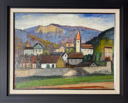 Pranas Domšaitis | Mountain settlement, 3th decade of the 20th c. | Oil on canvas, 61x81.5 (81x101)