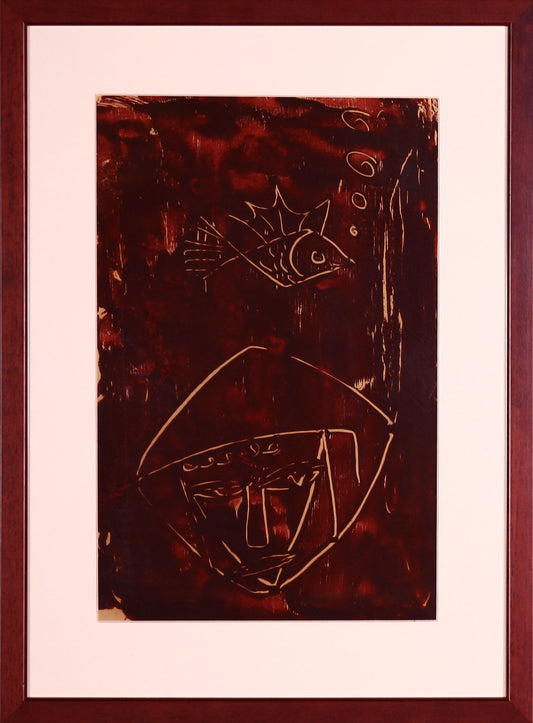 Teodoras Kazimieras Valaitis | Mask and Fish | Paper, monotype, 35.5x24