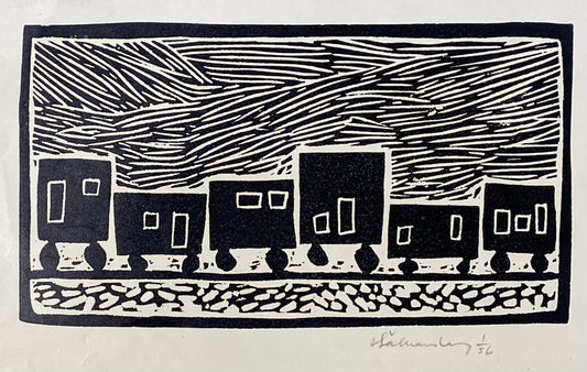 Henry Šalkauskas | The train, 1956 | Linocut, 11x20 (32x41)