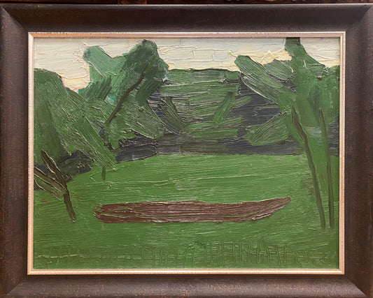 Viktoras Vizgirda | Landscape with Houses, 1962 | Oil on canvas, 60x77 (80x96)