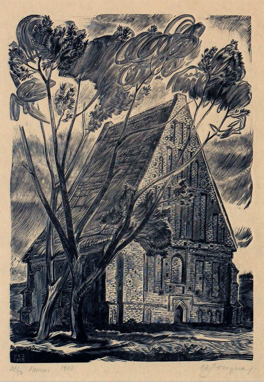 Vytautas Kazimieras Jonynas | Zapyškis Church, 1942 | Woodcut, 23x17 (50.2x42.5)