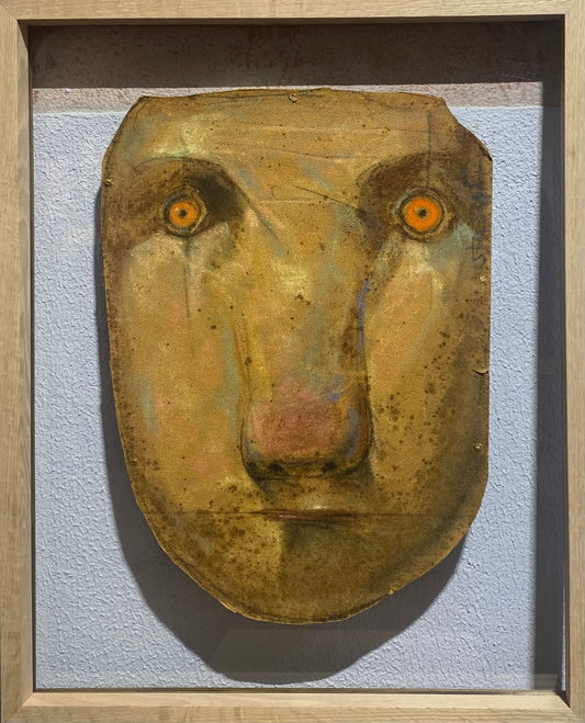 Pierre Dedieu (1928-2013, France) | Mask with happy face, 1962 | Carved wood bas-relief with black patina, 36.5x24.5x5.5