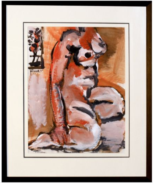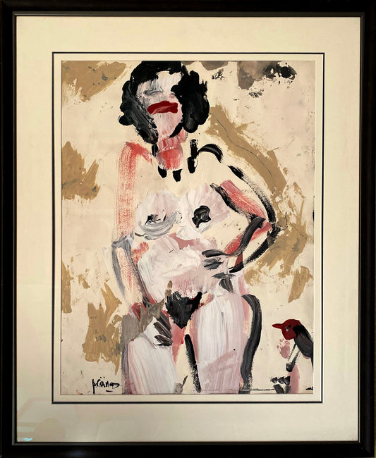 Pranas Gailius | Nude with bird | Acrylic on paper, 75x55.5 (104x83)