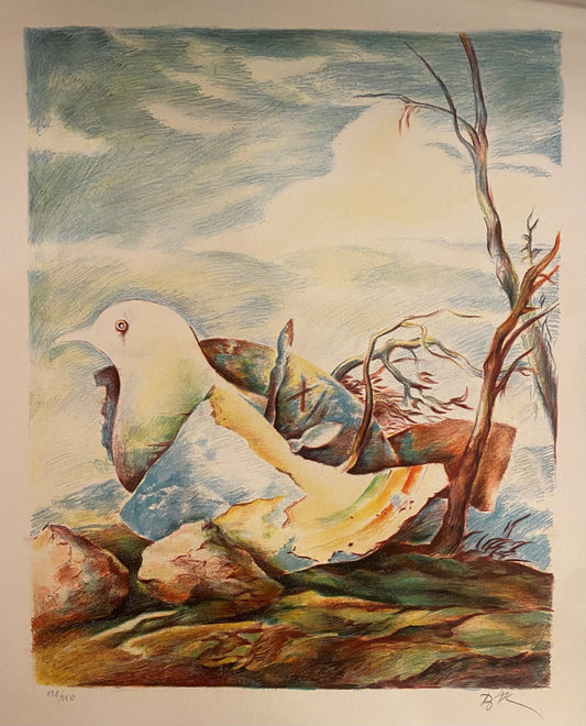 Samuel Bak | Bird with Time, ~1985 | Lithograph, 64x44,5 (84x65)