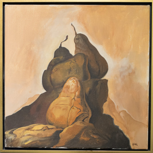 Samuel Bak | Pears in a Mountainscape, 1979-1981 | Drobė, akrilas, aliejus, 50x50