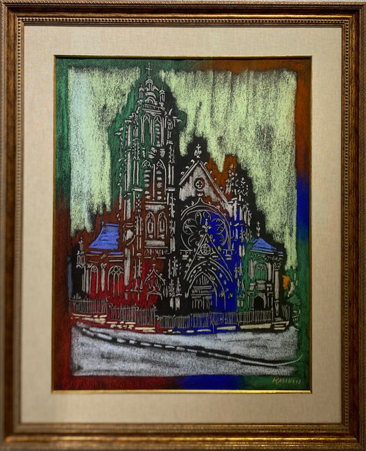 Vytautas Kasiulis | Saint Maclou Cathedral in Pontoise | Pastel, paper, 65x50 (84x69)