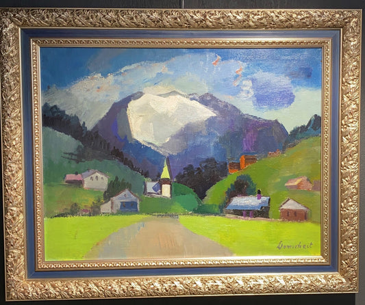 Pranas Domšaitis | Houses in the mountains, 4th decade of the 20th c. | Oil on canvas, 61,5x81,5 (75x95)