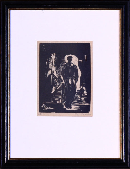 Telesforas Valius | At the Marina, 1936 | Woodcut, 11x8 (26,4x20,4)