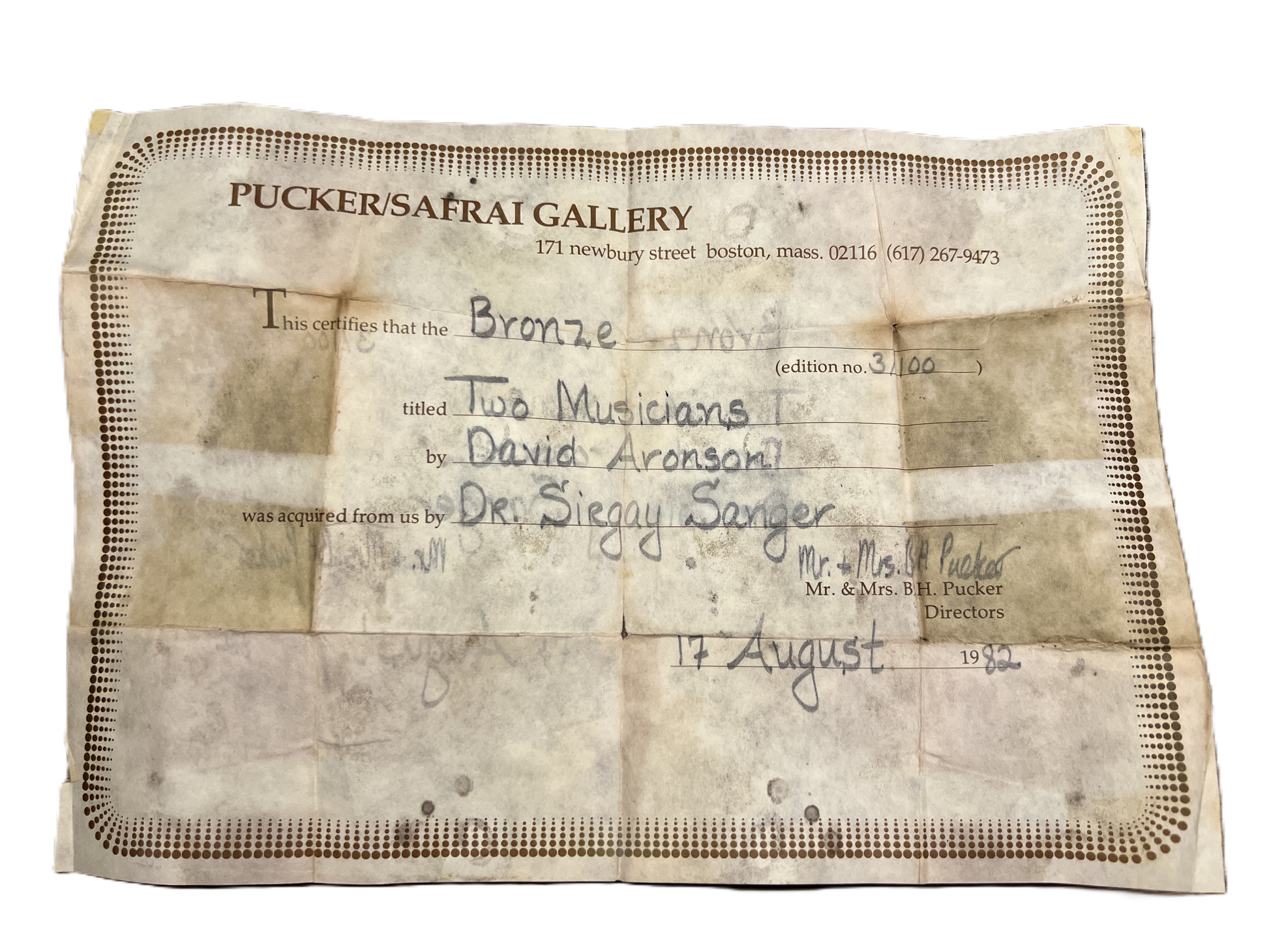 The artwork is accompanied by a certificate of purchase issued by Pucker/Safrai Gallery.