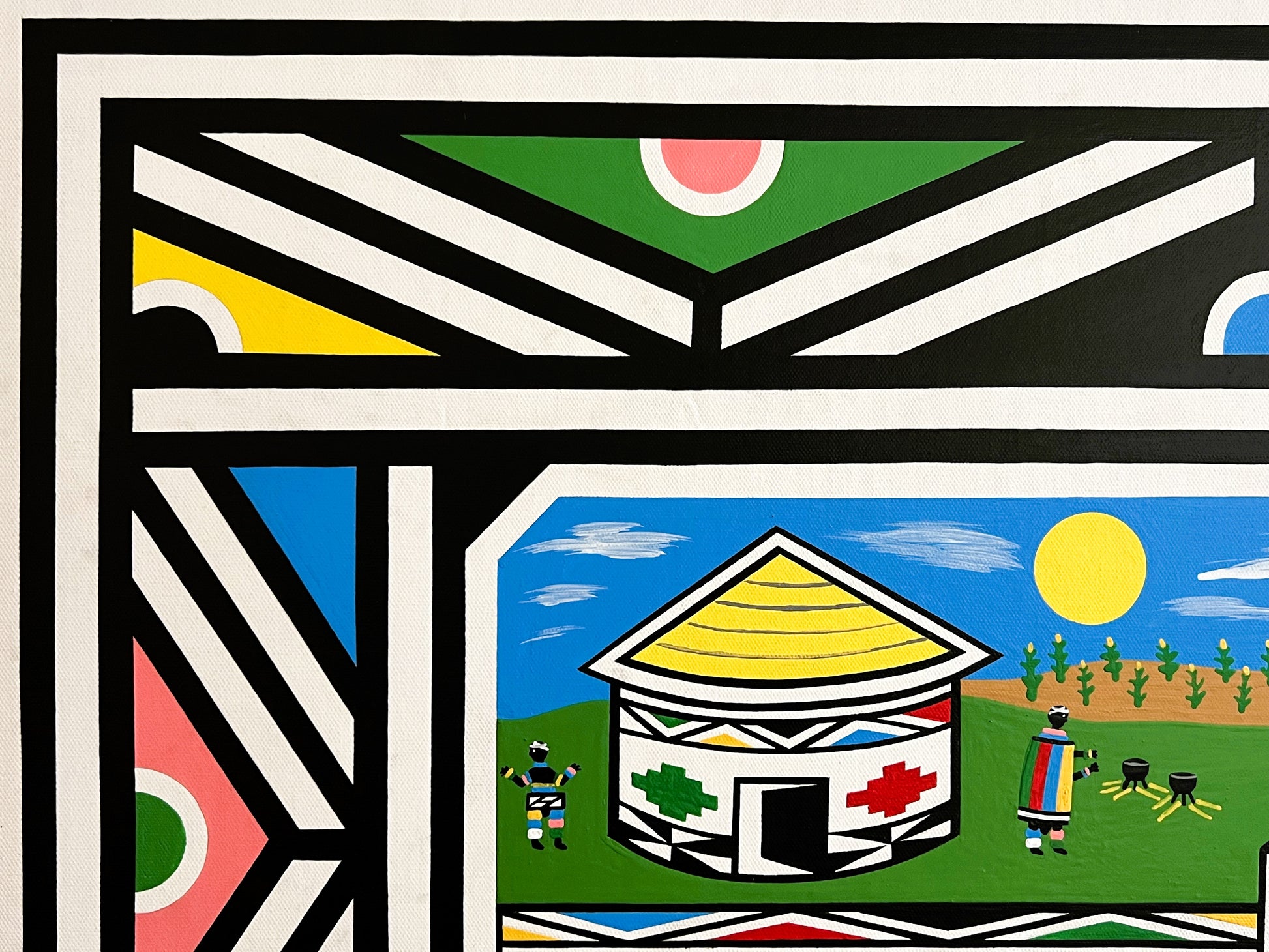 Esther Mahlangu (b. 1935, South Africa) | Ndebele Dwellings, 2015 | Acrylic on canvas, 65x95 (71x101)