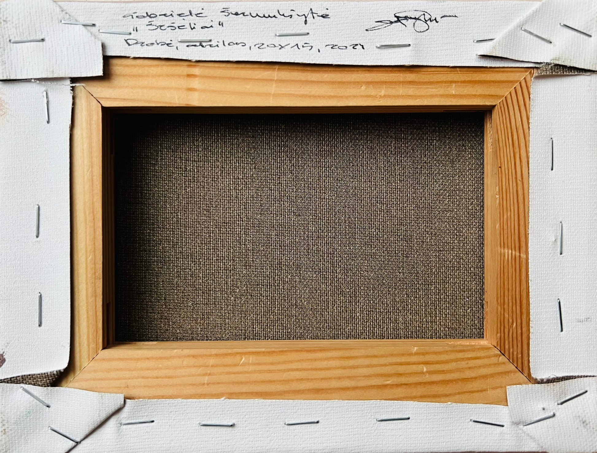 Signed on reverse. Stretched on stretchers, not framed.