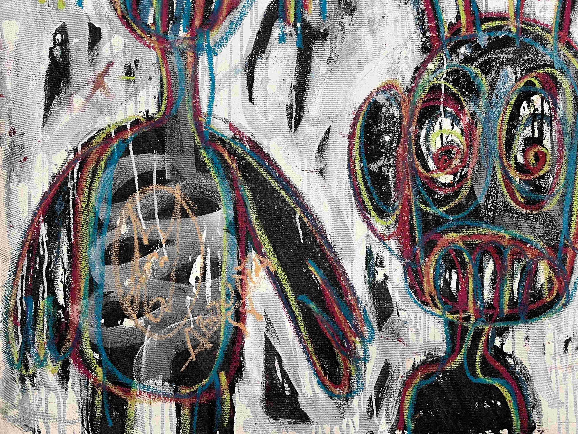 Aboudia | Spectacle Watchers, 2016 | Akrilas, aliejus, mišri technika, drobė, 110,5 x 128,5