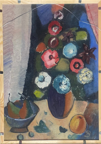 Dvipusis paveikslas, antroj pusej: Natiurmortas su gėlėmis ir vaisiais