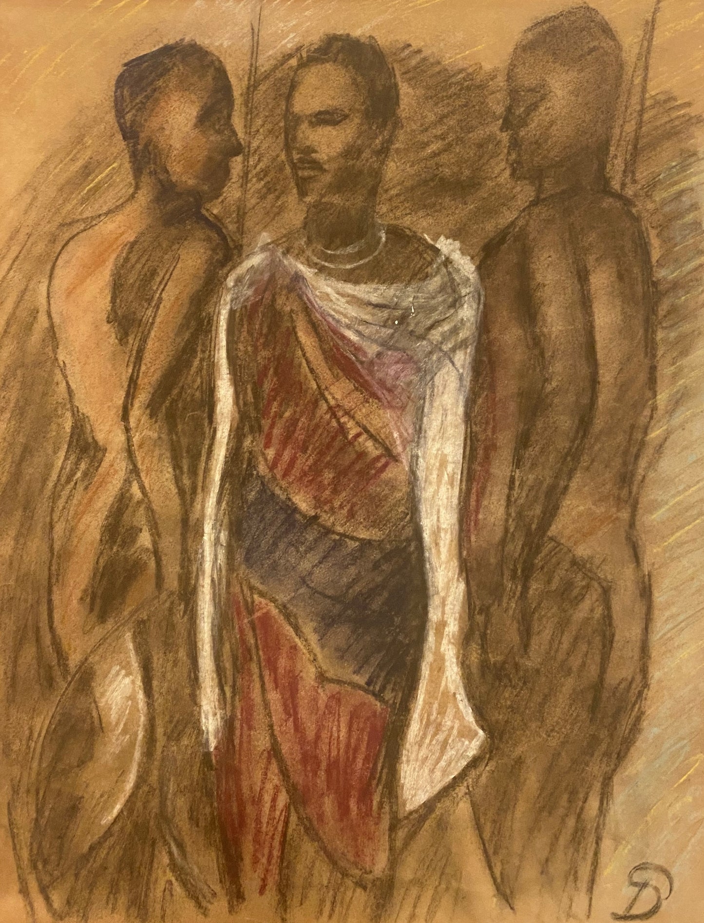 Pranas Domšaitis | 3 Figūros, 6-7 deš. | Pastelė, popierius, 45,5x37,5
