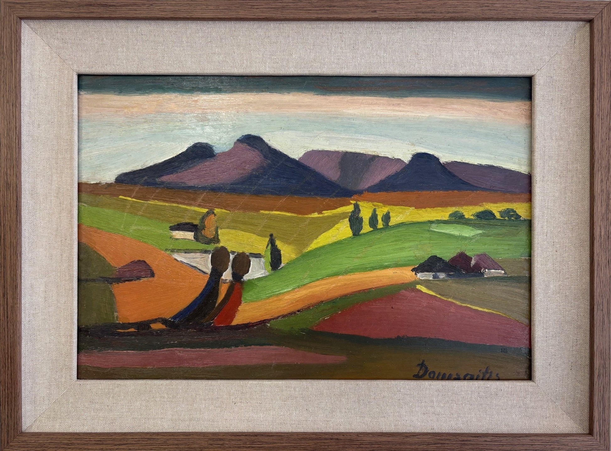 Pranas Domšaitis | Miesto peizažas (su vežimu) | Aliejus, kartonas, 36 x 53,5 cm (48 x 65)