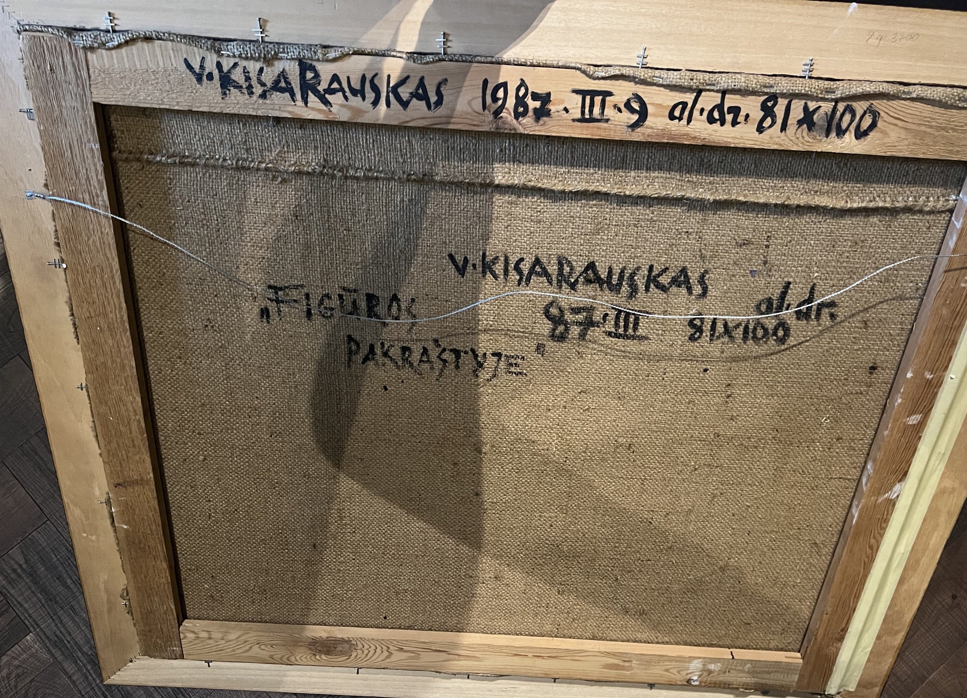 AK: (parašas) / 87 ; reverse: V. KISARAUSKAS „FIGŪROS PAKRAŠTYJE“ 87.III al. dr. 81x100; on stretchers: V. KISARAUSKAS 1987.III.9 al. dr. 81x100