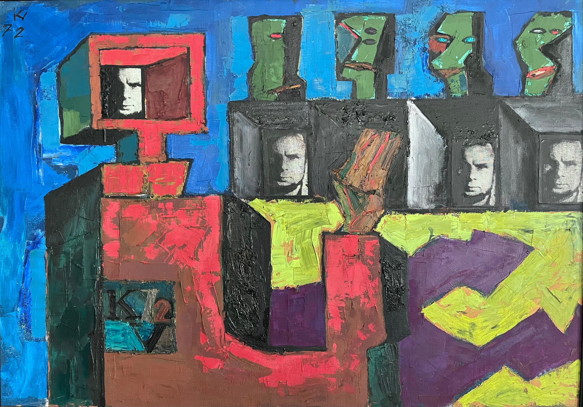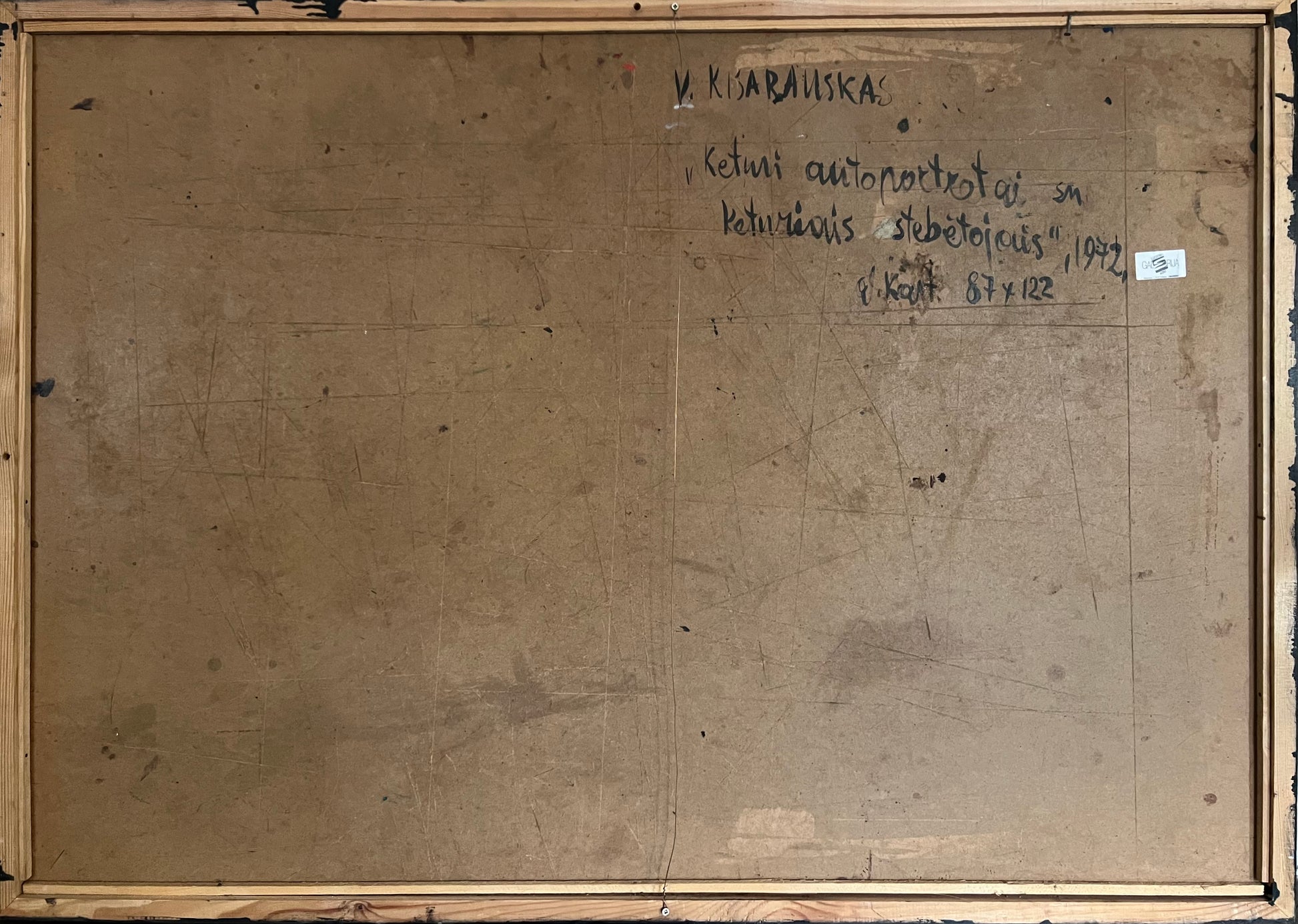 Sign.: VK: KV 72; reverse: V. KISARAUSKAS „Keturi autoportretai su keturiais stebėtojais“, 1972, al. kart. 87x122