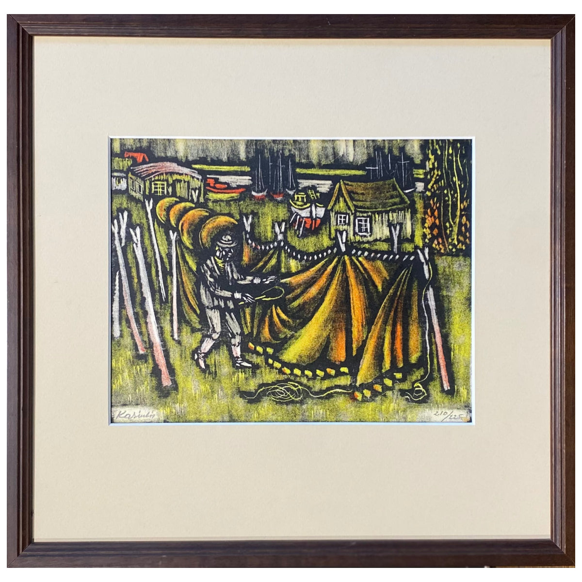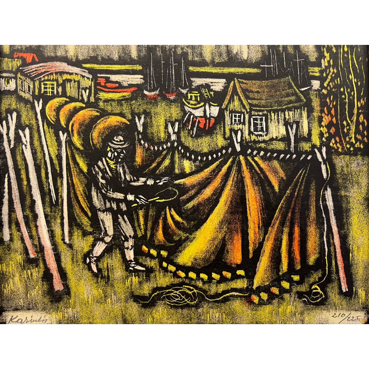 Vytautas Kasiulis | Žvejų tinklai | Litografija, 17x21 (31,5x32,5)