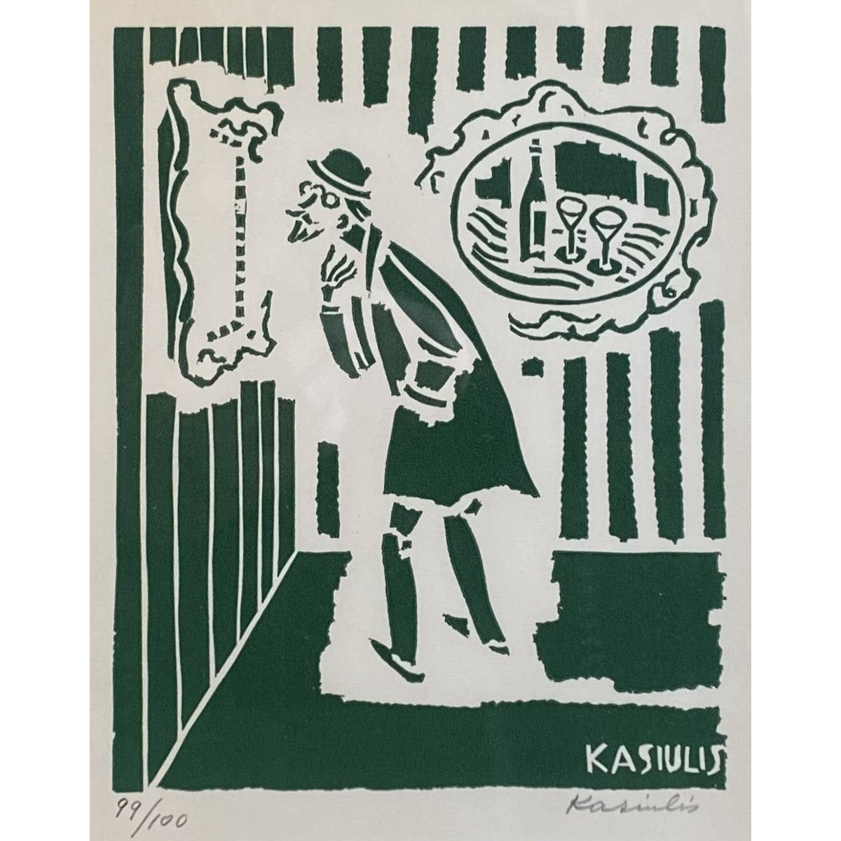 Vytautas Kasiulis | Vyras galerijoje | Lnoraižinys, 99/100, 18,5x14,5 (32,5x26,5)